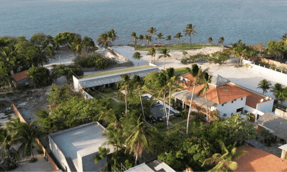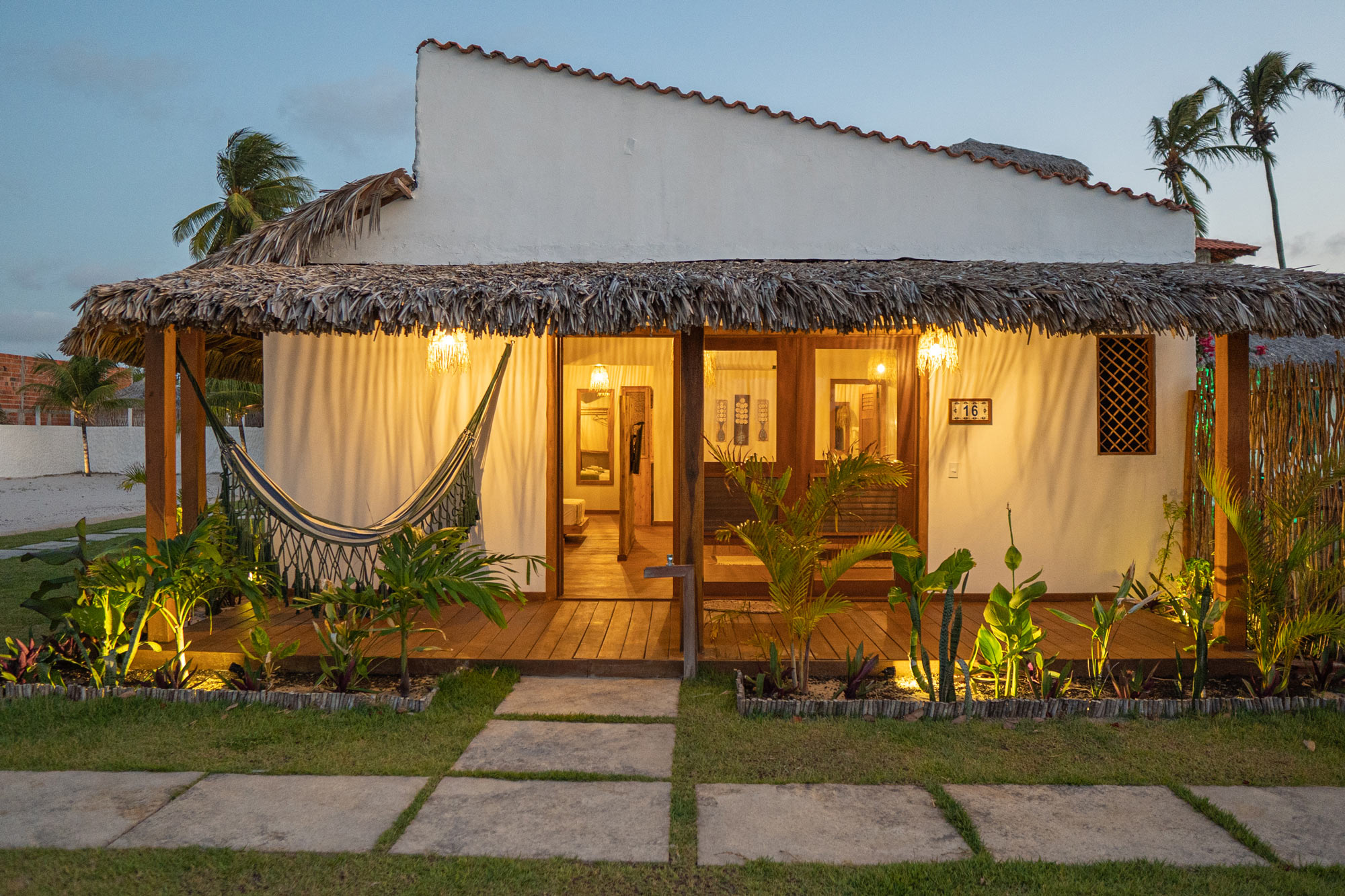 A madeira, o buriti e os tons neutros se integram à natureza, criando um refúgio de serenidade e conforto à beira-mar — ideal para quem busca relaxar com autenticidade e estilo.